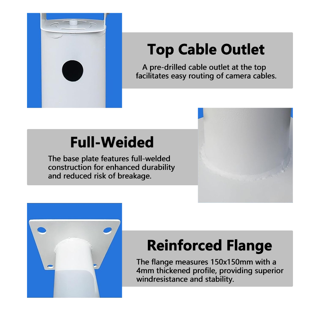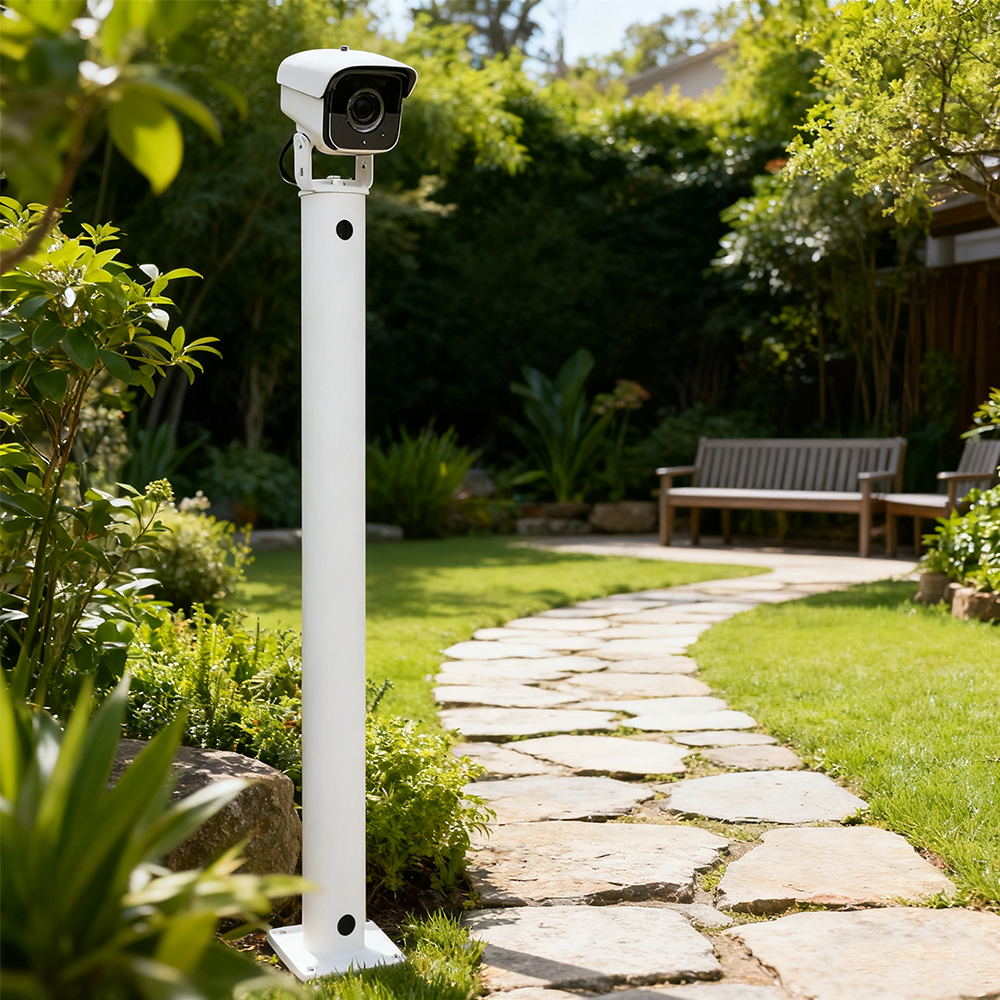 Extra-long Surveillance Post Stand White Security Camera Holder Post